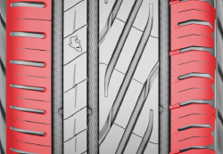 Opona posiada asymetryczny, efektowny wzór bieżnika. Takie rozwiązanie, oprócz walorów wizualnych pozwala na osiągnięcie optymalnych parametrów na mokrej oraz suchej nawierzchni.